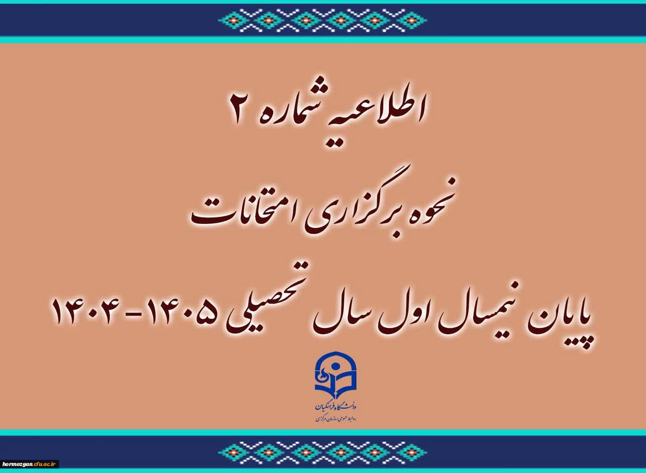 اطلاعیه شماره ۲ | نحوه برگزاری امتحانات پایان نیمسال اول ۱۴٠۵-۱۴٠۴