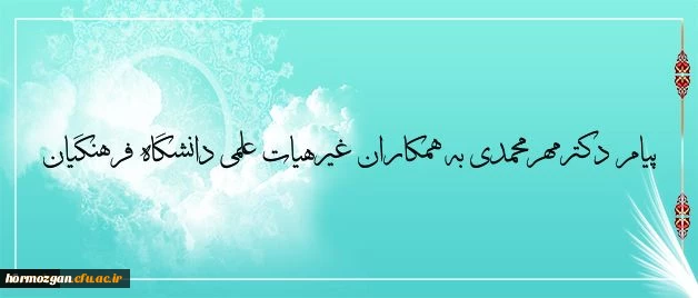 امتیاز دهید : پیام دکترمهرمحمدی به همکاران غیرهیات علمی دانشگاه فرهنگیان 2 شنبه 3 مهر 1395 ساعت 10:00