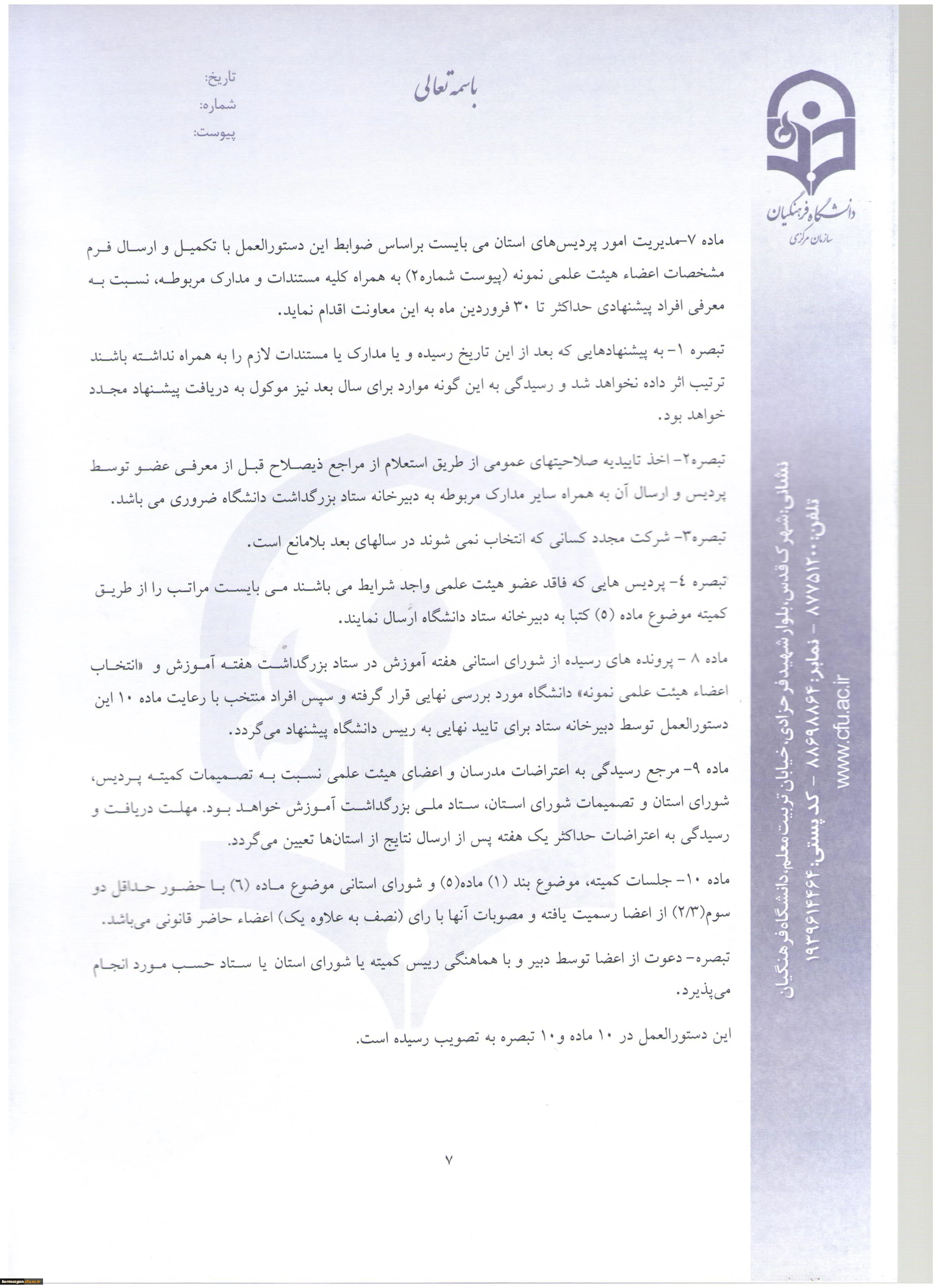 اطلاعیه معاونت آموزش و تحصیلات تکمیلی: دستورالعمل انتخاب اعضای هیات علمی نمونه کشوری و پیشکسوت برگزیده 13