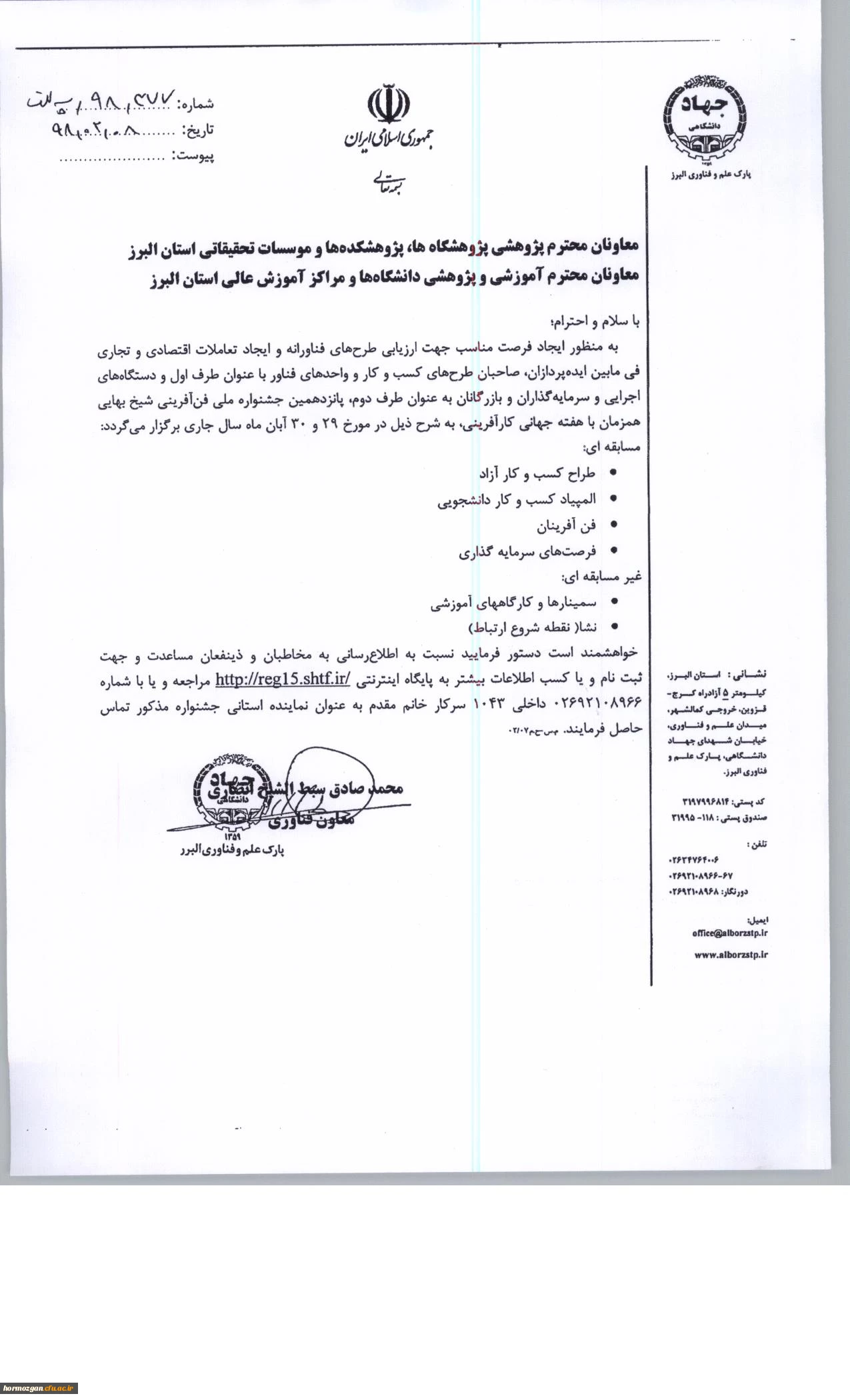 امتیاز دهید : فراخوان پانزدهمین جشنواره ملی فن آفرینی شیخ بهایی 2 چهارشنبه 25 اردیبهشت 1398 ساعت 8:13