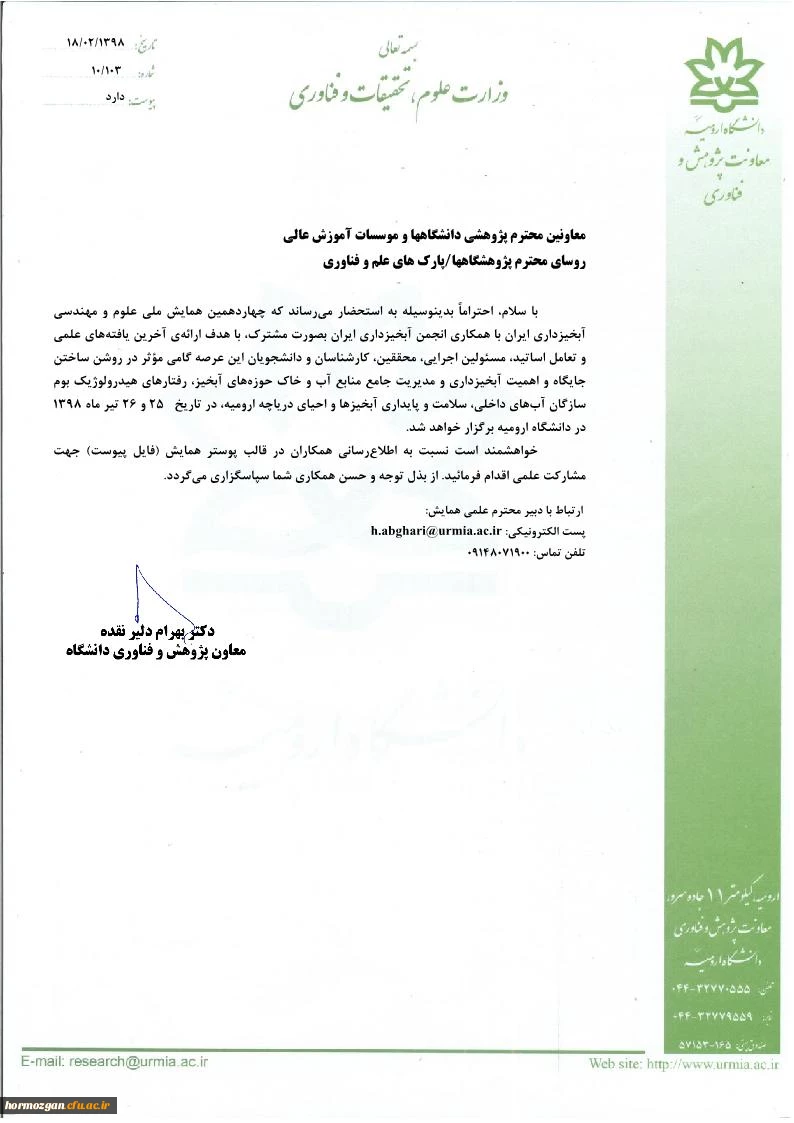 امتیاز دهید : فراخوان چهاردهمین همایش ملی علوم و مهندسی آبخیزداری ایران 2 چهارشنبه 8 خرداد 1398 ساعت 10:06