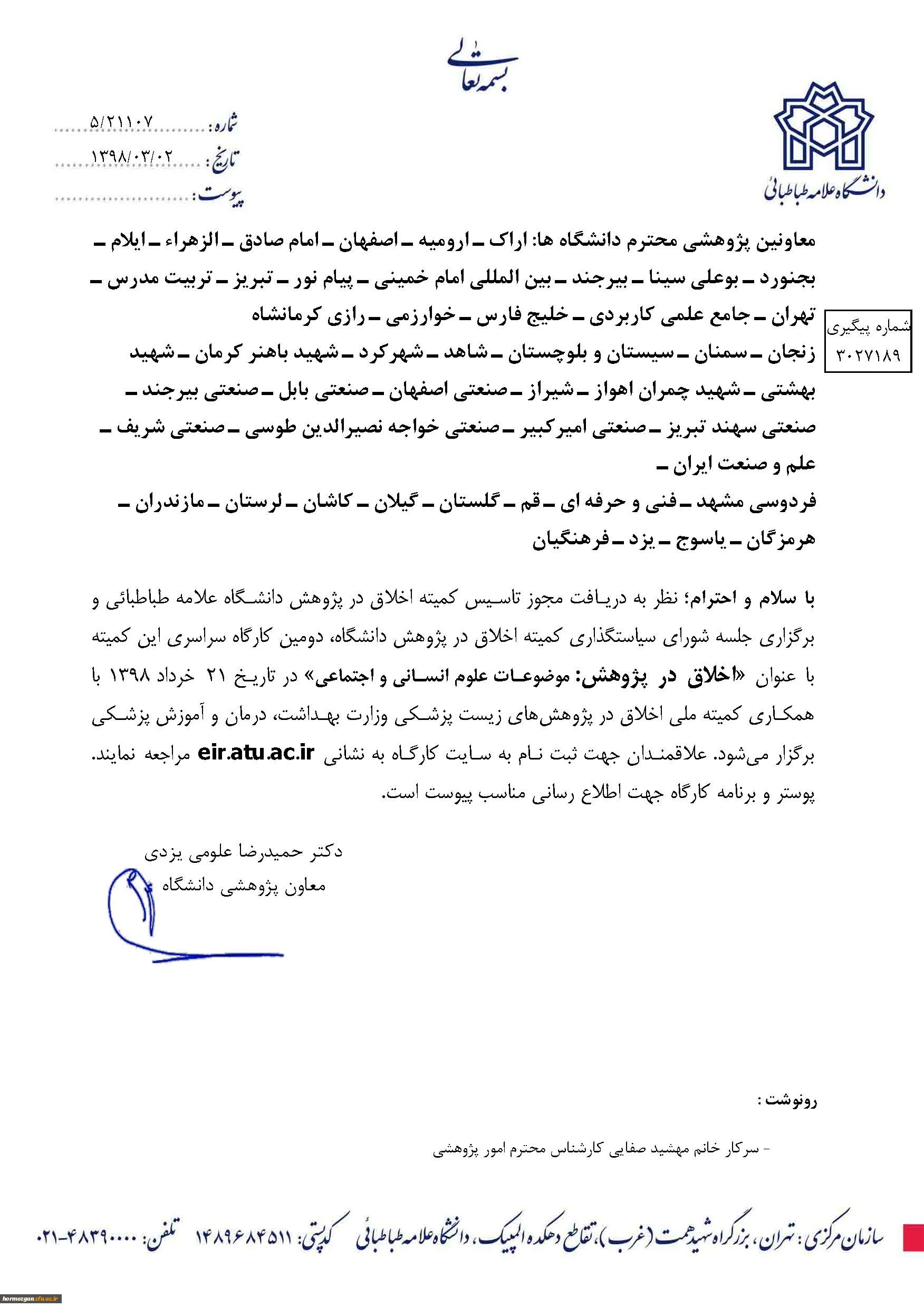 امتیاز دهید : دومین کارگاه سراسری اخلاق در پژوهش(موضوعات علوم انسانی واجتماعی)" 2 دوشنبه 20 خرداد 1398 ساعت 7:19