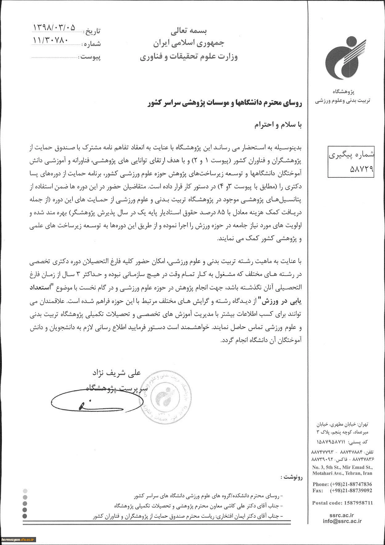دوره پسادکتری پژوهشگاه تربیت بدنی و علوم ورزشی با همکاری صندوق حمایت از فناوران و پژوهشگران کشور 3