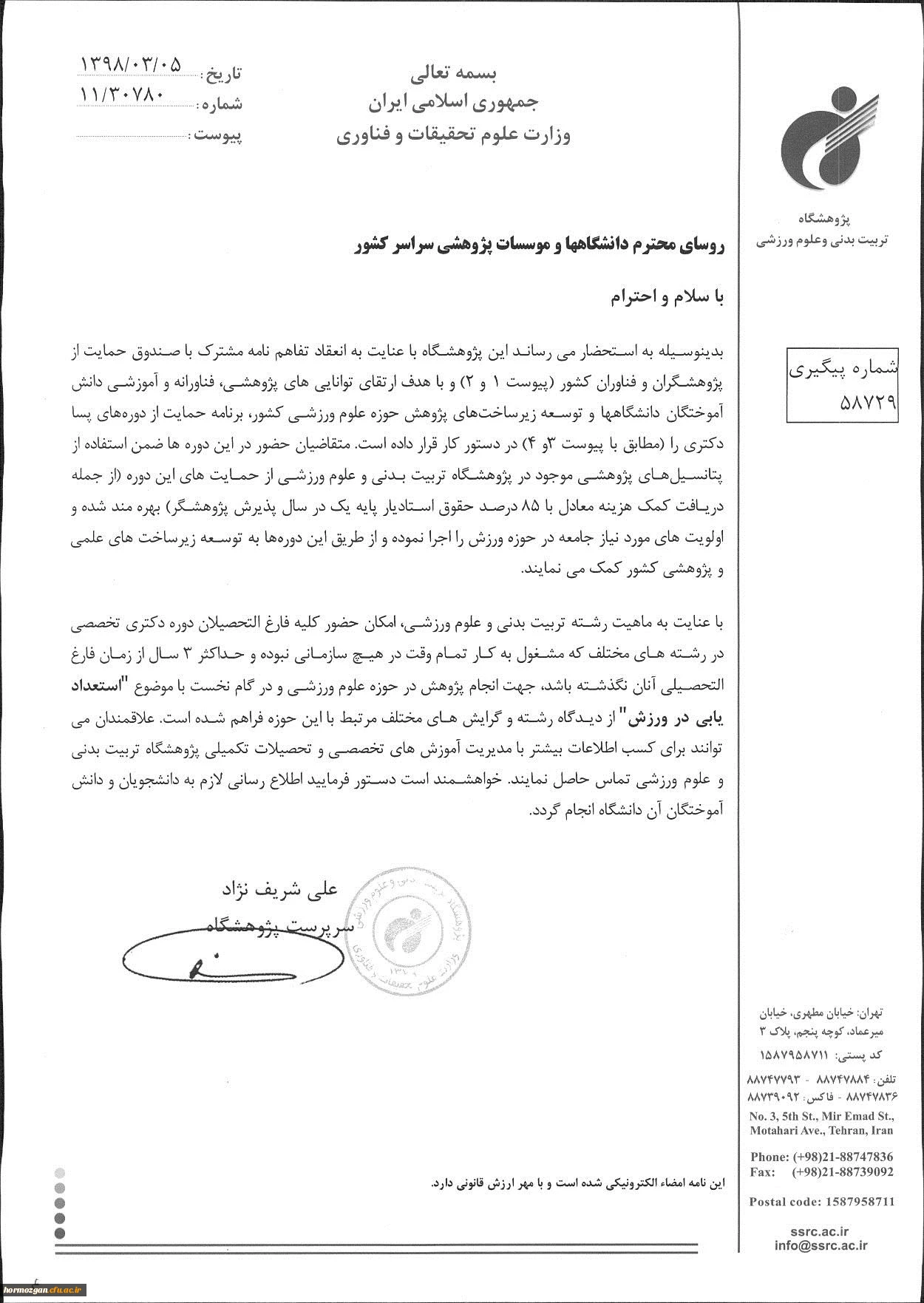 دوره پسادکتری پژوهشگاه تربیت بدنی و علوم ورزشی با همکاری صندوق حمایت از فناوران و پژوهشگران کشور 4