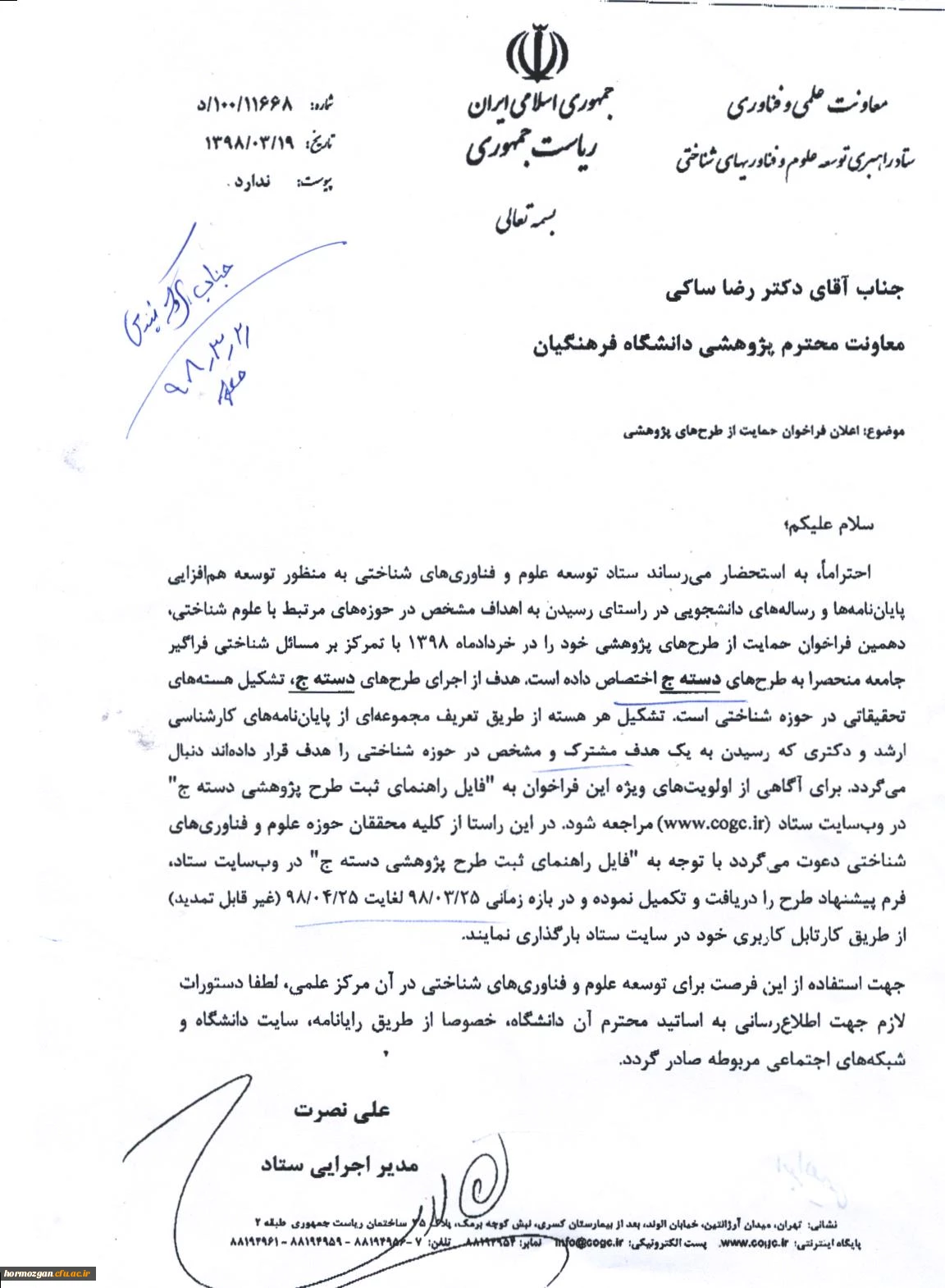 امتیاز دهید : فراخوان حمایت از طرح های پژوهشی ستاد راهبری توسعه علوم و فناوری های شناختی 2 یکشنبه 16 تیر 1398 ساعت 8:16