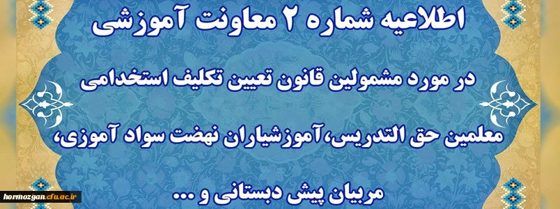 اطلاعیه شماره دو پیرامون دوره مهارت آموزی معلمین حق التدریس ، آموزشیاران ، مربیان و خرید خدمات آموزش و پرورش 2