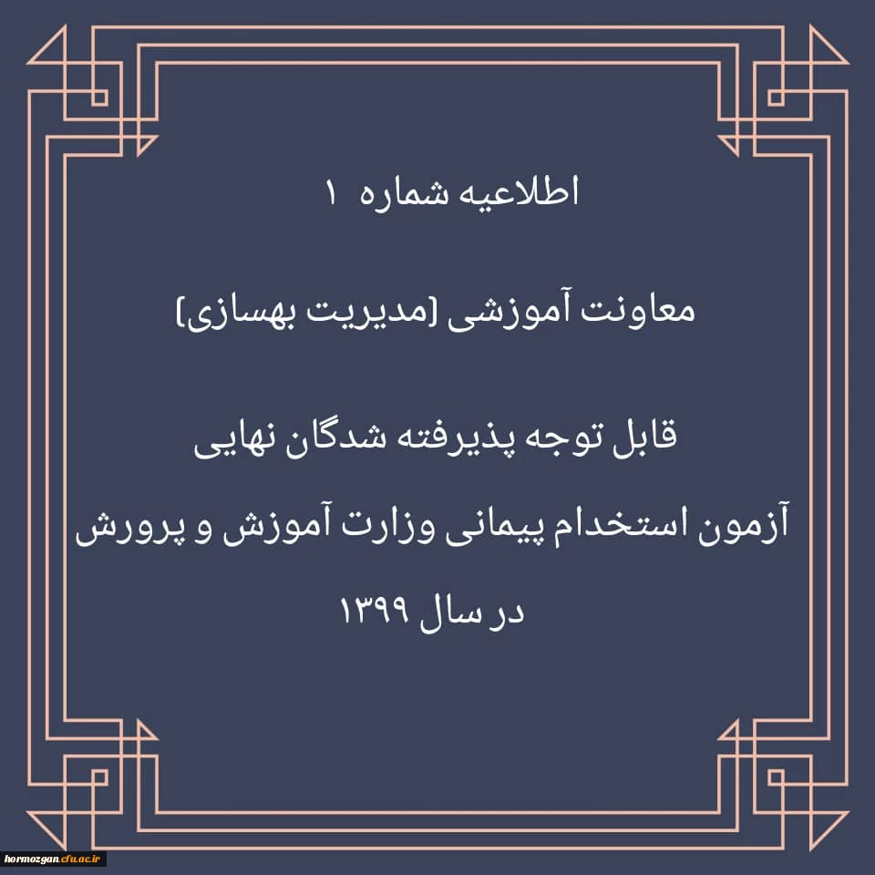 اطلاعیه شماره 1 معاونت آموزشی (مدیریت بهسازی منایع انسانی) قابل توجه پذیرفته شدگان نهایی آزمون استخدام پیمانی وزارت آموزش و پرورش در سال 1399 2