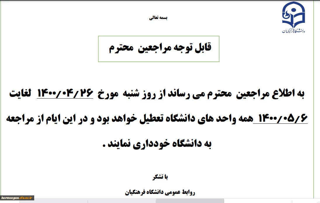 مدیریت امور پردیس های استان هرمزگان