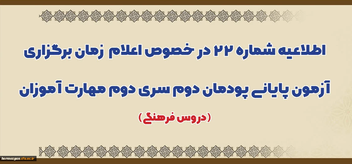 اعلام زمان برگزاری آزمون پایانی پودمان دوم سری دوم مهارت آموزان (دروس فرهنگی) 2