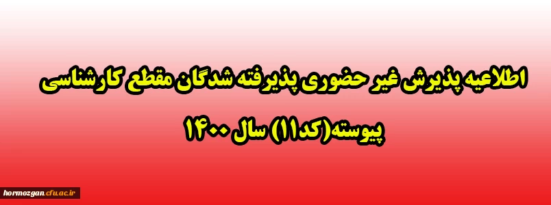امتیاز دهید : پذیرش غیر حضوری پذیرفته شدگان مقطع کارشناسی پیوسته (کد 11) سال 1400" 2 شنبه 8 آبان 1400 ساعت 11:50