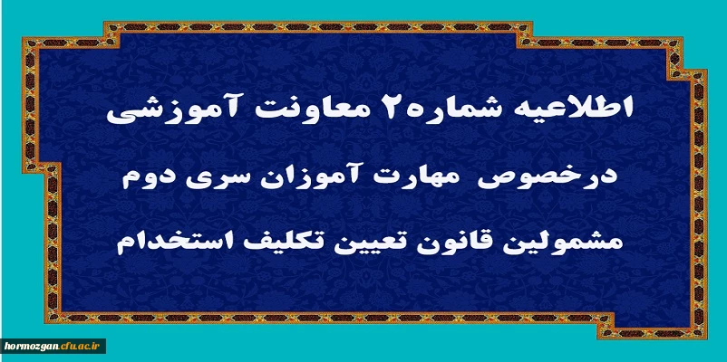 امتیاز دهید : قابل توجه مهارت آموزان سری دوم مشمولین قانون تعیین تکلیف استخدام 3 شنبه 9 بهمن 1400 ساعت 8:59