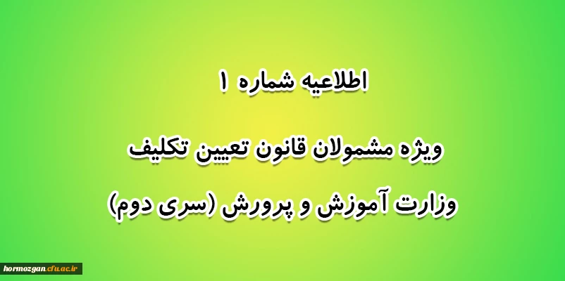 امتیاز دهید : ویژه مشمولان قانون تعیین تکلیف وزارت آموزش و پرورش (سری دوم) 2 شنبه 9 بهمن 1400 ساعت 11:14