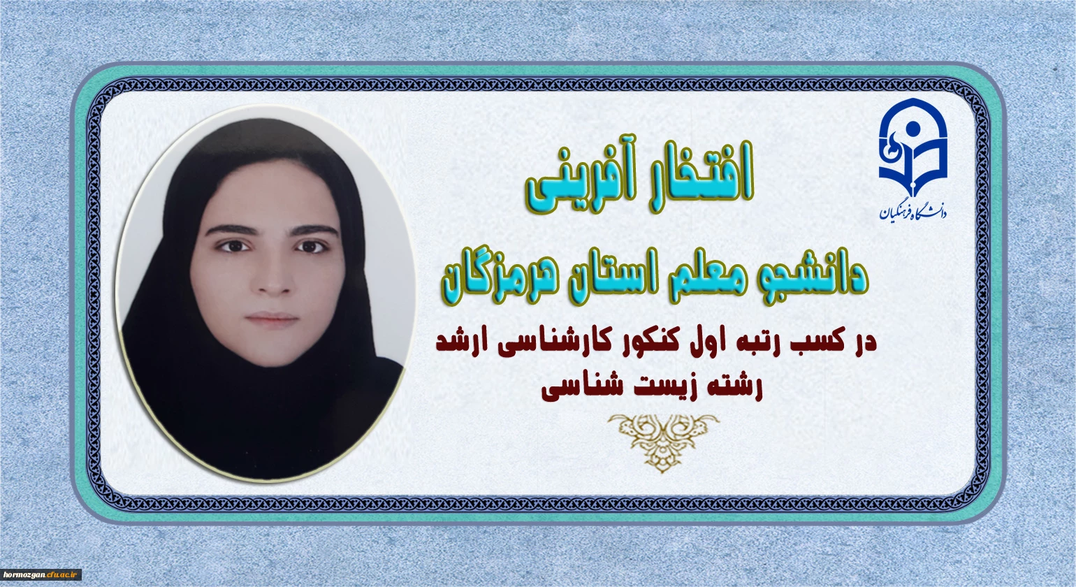 افتخار آفرینی دانشجو معلم استان هرمزگان در کسب رتبه اول کنکور کارشناسی ارشد رشته زیست شناسی 2