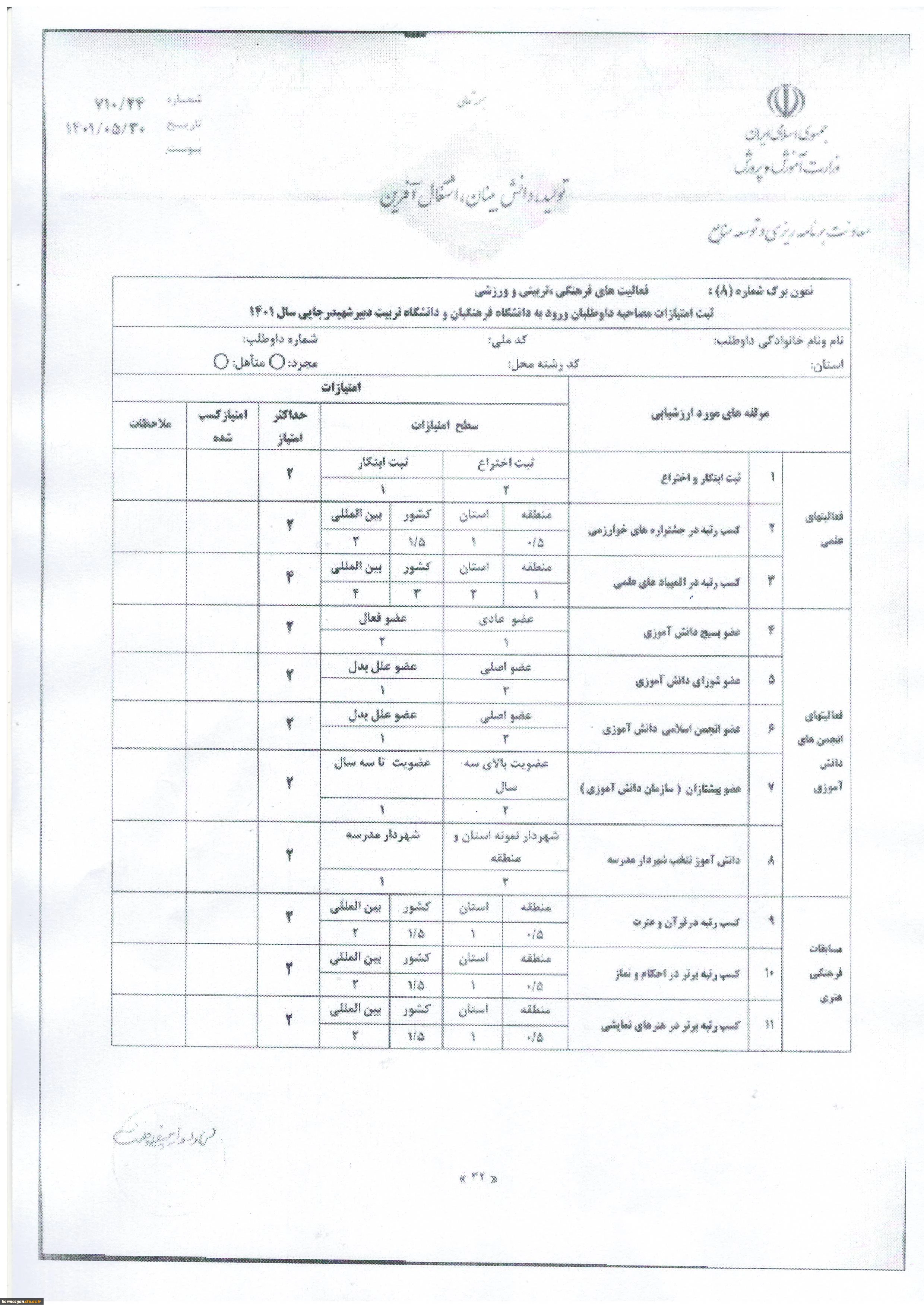 فرم شماره 8 مربوط به مصاحبه علمی تخصصی