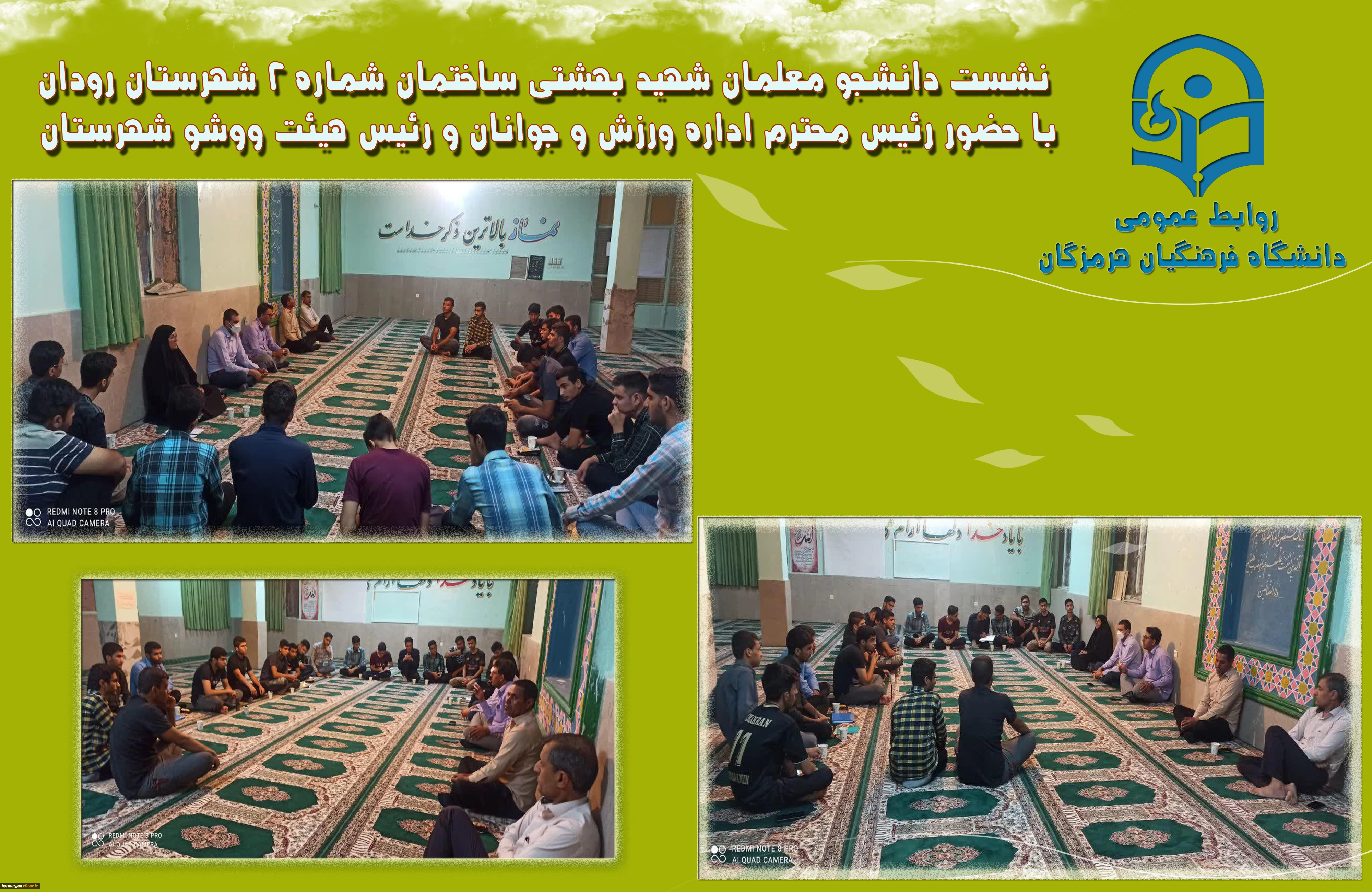 امتیاز دهید : نشست دانشجو معلمان شهید بهشتی ساختمان شماره 2 شهرستان رودان سهشنبه 10 آبان 1401 ساعت 11:18