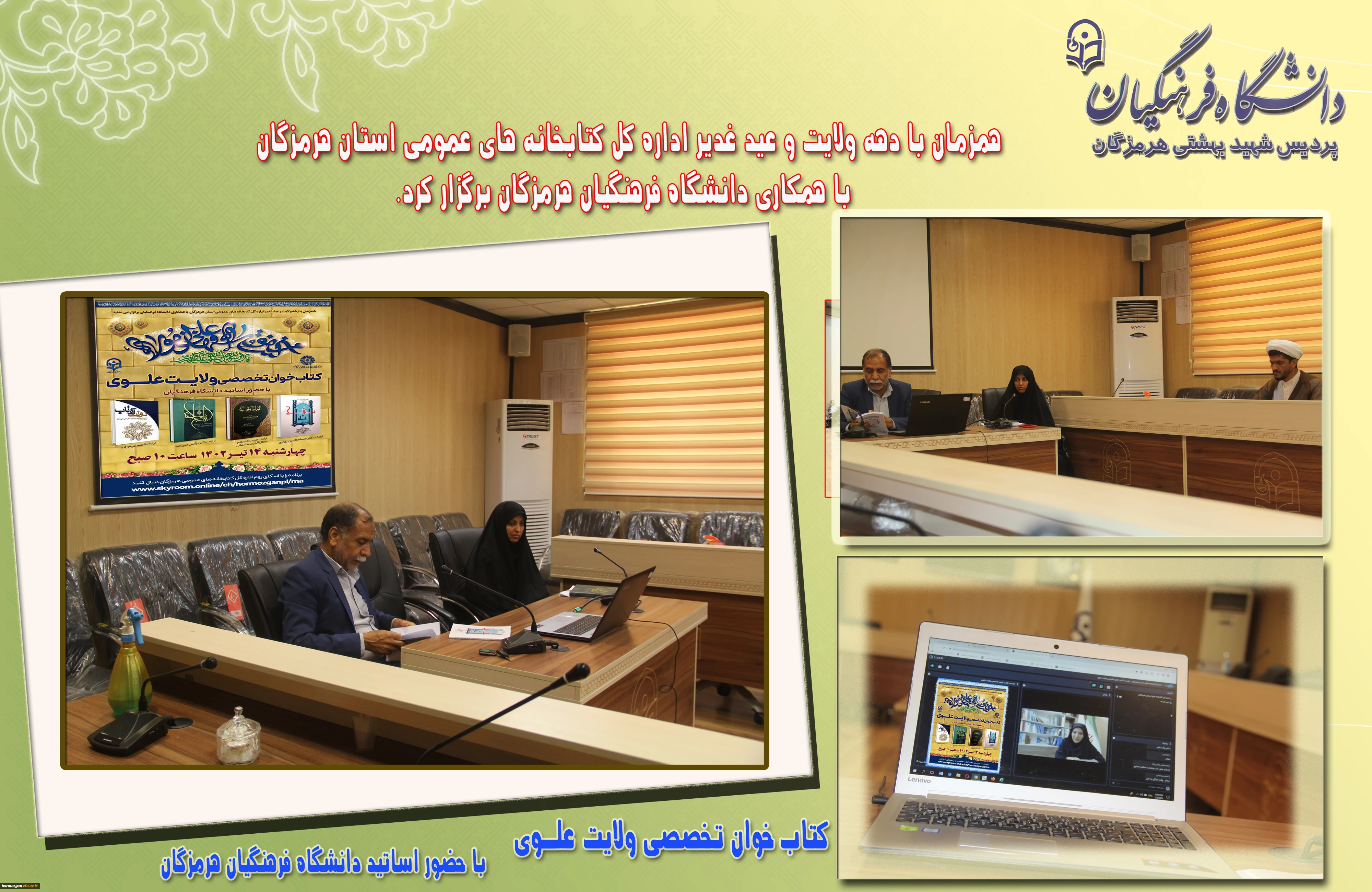 همزمان با دهه ولایت و عید غدیرخم جلسه کتاب خوان تخصصی ولایت علوی با حضور اساتید دانشگاه فرهنگیان و اداره کل کتابخانه های عمومی هرمزگان برگزار گردید. 2