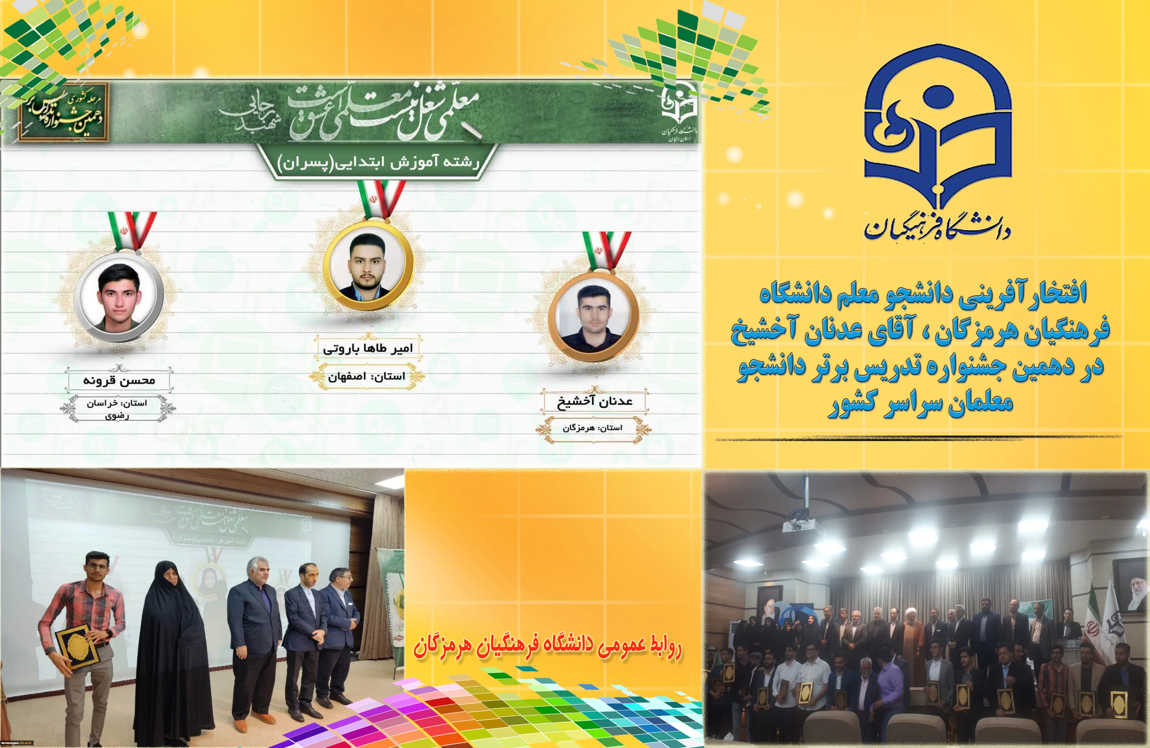 افتخارآفرینی دانشجو معلم دانشگاه فرهنگیان هرمزگان در دهمین جشنواره تدریس برتر دانشجو معلمان سراسر کشور 2