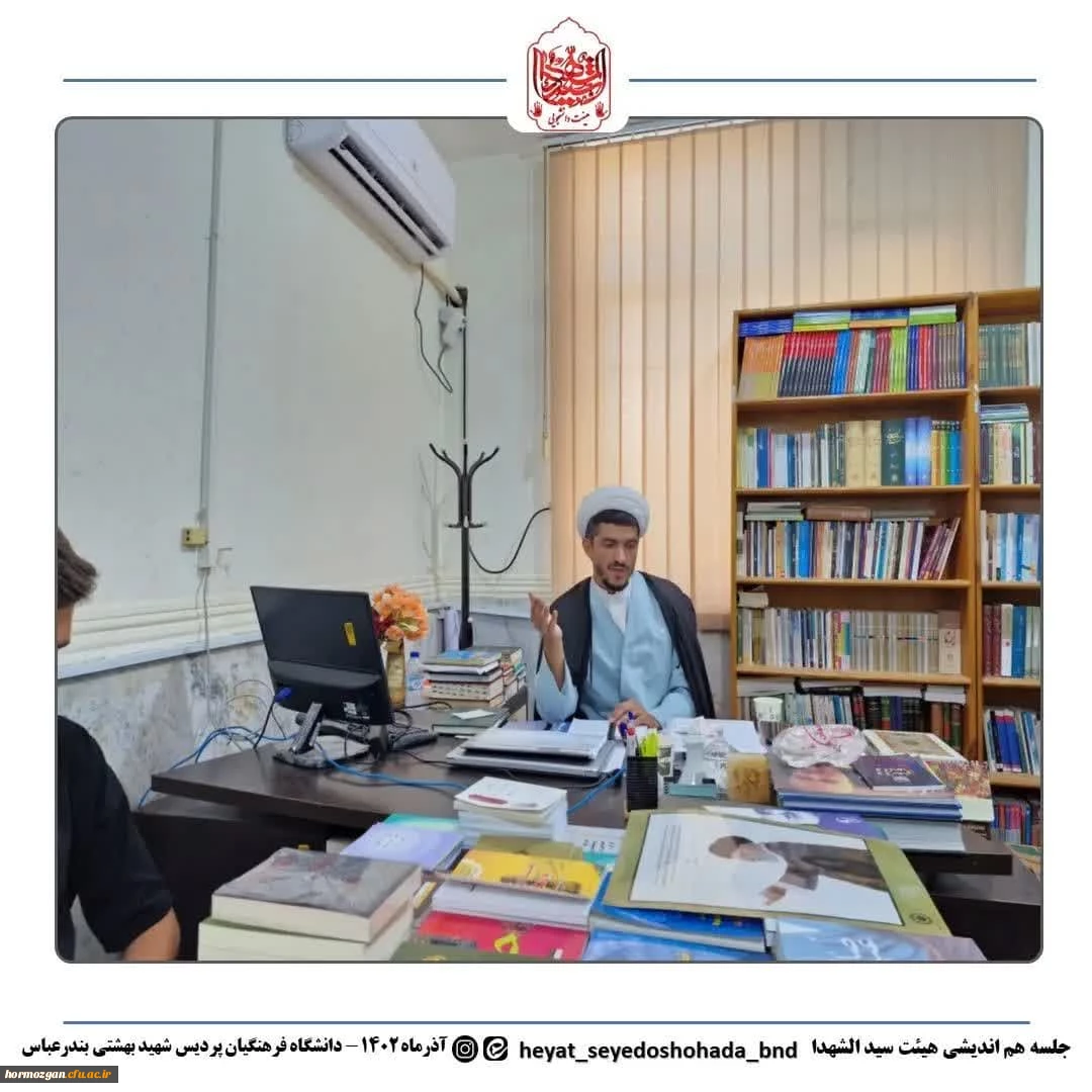 جلسه هم اندیشی اعضای هیئت سیدالشهداء علیه السلام دانشگاه فرهنگیان بندرعباس با حجت الاسلام والمسلمین سلیمانی کیاسری مسؤل نهاد رهبری دانشگاه فرهنگیان هرمزگان 3