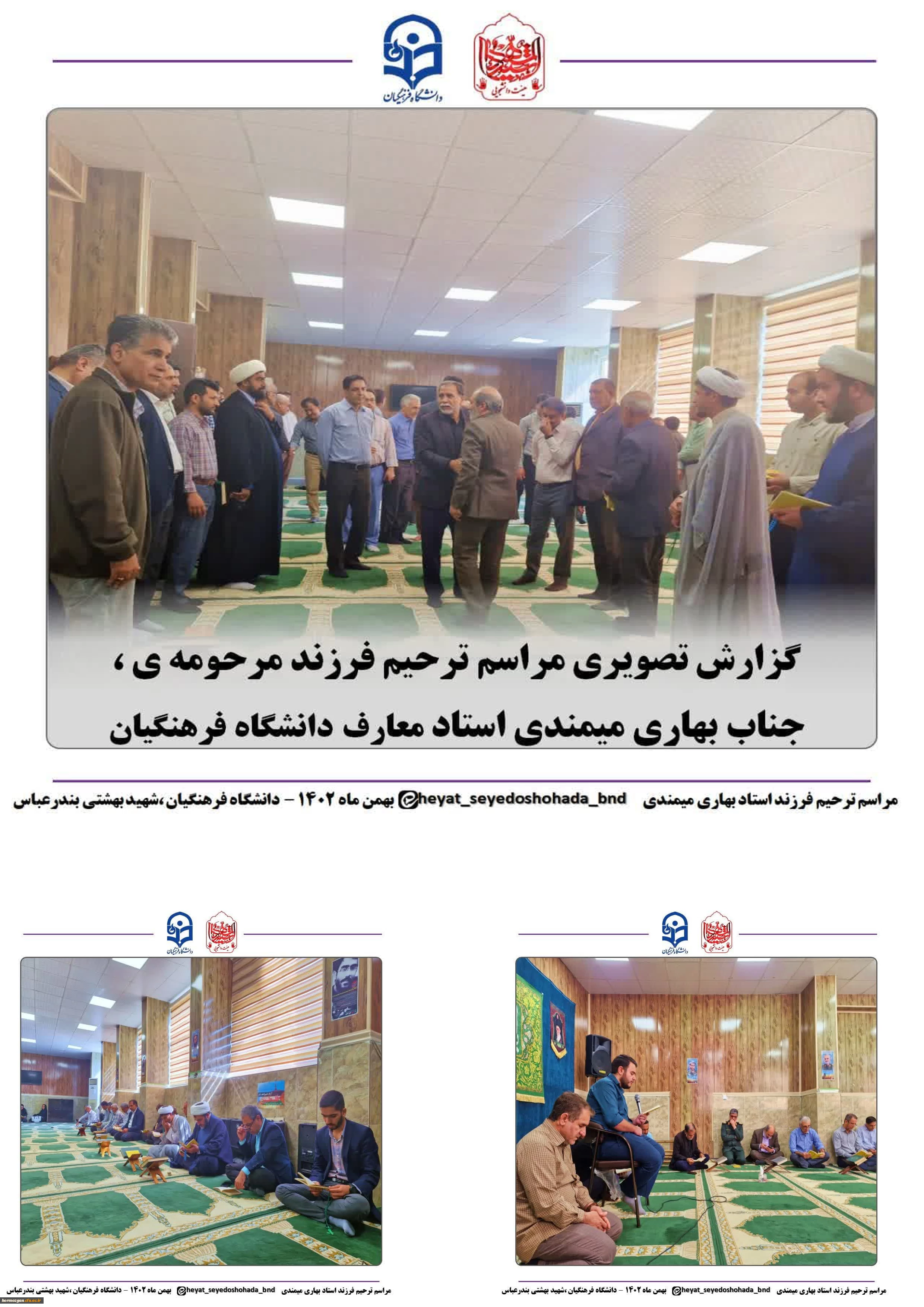 مراسم ترحیم و یادبود فرزند مرحومه ی جناب آقای بهاری میمندی، در دانشگاه فرهنگیان هرمزگان پردیس شهید بهشتی برگزار شد. 2