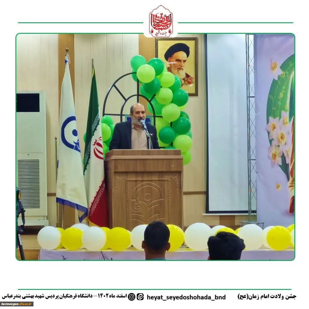 برپایی جشن میلاد امام زمان (عج) در دانشگاه فرهنگیان پردیس شهیدبهشتی استان هرمزگان با همکاری کانون مهدویت و بسیج دانشجویی دانشگاه فرهنگیان هرمزگان 3
