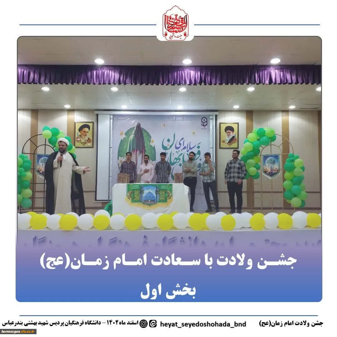 برپایی جشن میلاد امام زمان (عج) در دانشگاه فرهنگیان پردیس شهیدبهشتی استان هرمزگان با همکاری کانون مهدویت و بسیج دانشجویی دانشگاه فرهنگیان هرمزگان 4