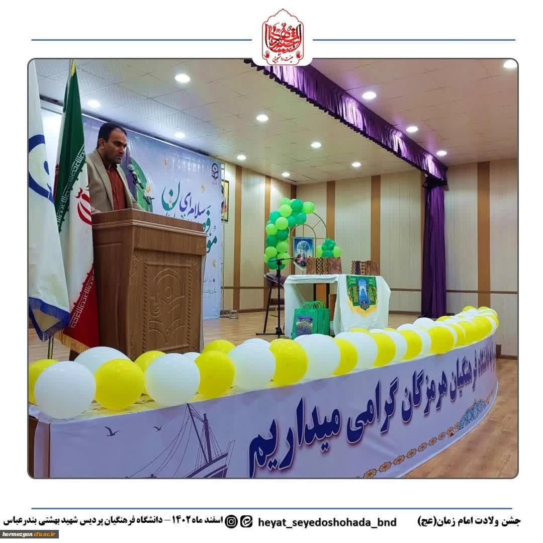 برپایی جشن میلاد امام زمان (عج) در دانشگاه فرهنگیان پردیس شهیدبهشتی استان هرمزگان با همکاری کانون مهدویت و بسیج دانشجویی دانشگاه فرهنگیان هرمزگان 3