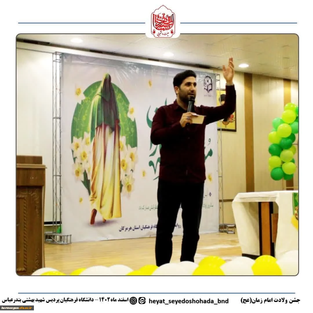 برپایی جشن میلاد امام زمان (عج) در دانشگاه فرهنگیان پردیس شهیدبهشتی استان هرمزگان با همکاری کانون مهدویت و بسیج دانشجویی دانشگاه فرهنگیان هرمزگان 4