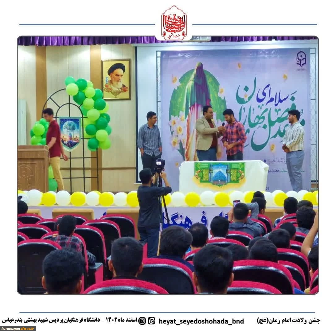 برپایی جشن میلاد امام زمان (عج) در دانشگاه فرهنگیان پردیس شهیدبهشتی استان هرمزگان با همکاری کانون مهدویت و بسیج دانشجویی دانشگاه فرهنگیان هرمزگان 3