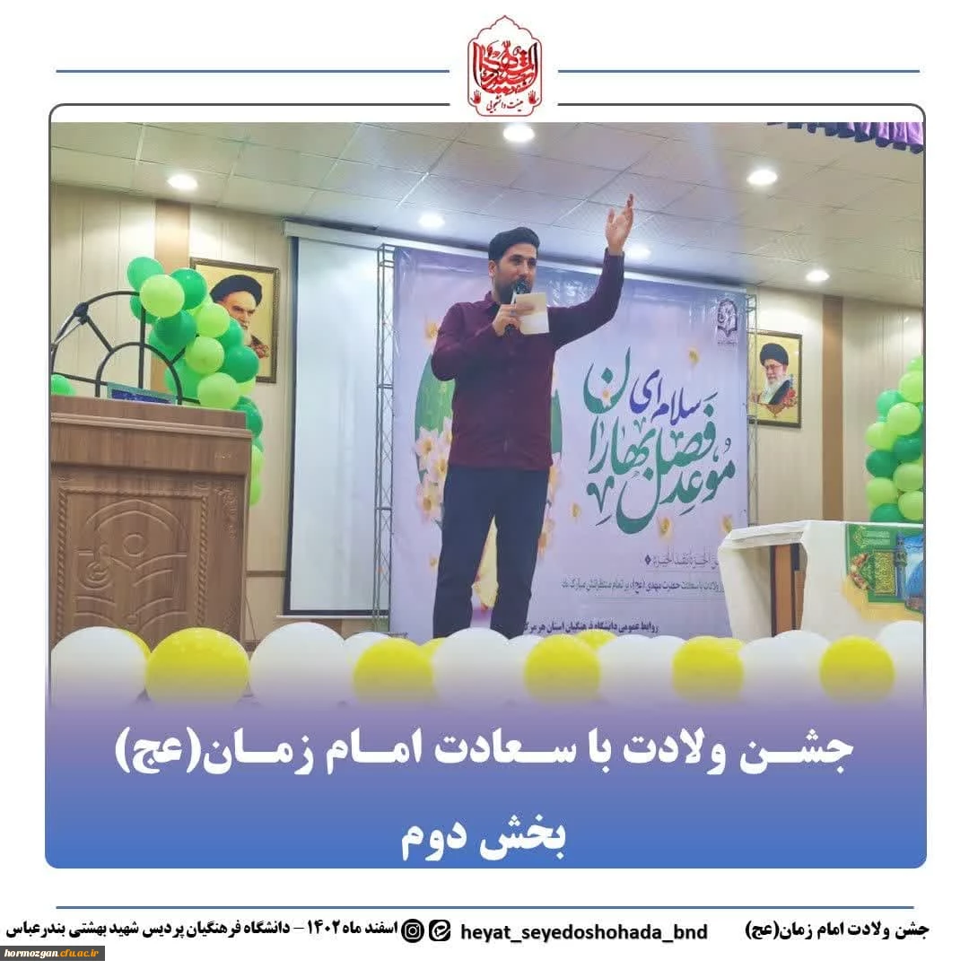 برپایی جشن میلاد امام زمان (عج) در دانشگاه فرهنگیان پردیس شهیدبهشتی استان هرمزگان با همکاری کانون مهدویت و بسیج دانشجویی دانشگاه فرهنگیان هرمزگان 3