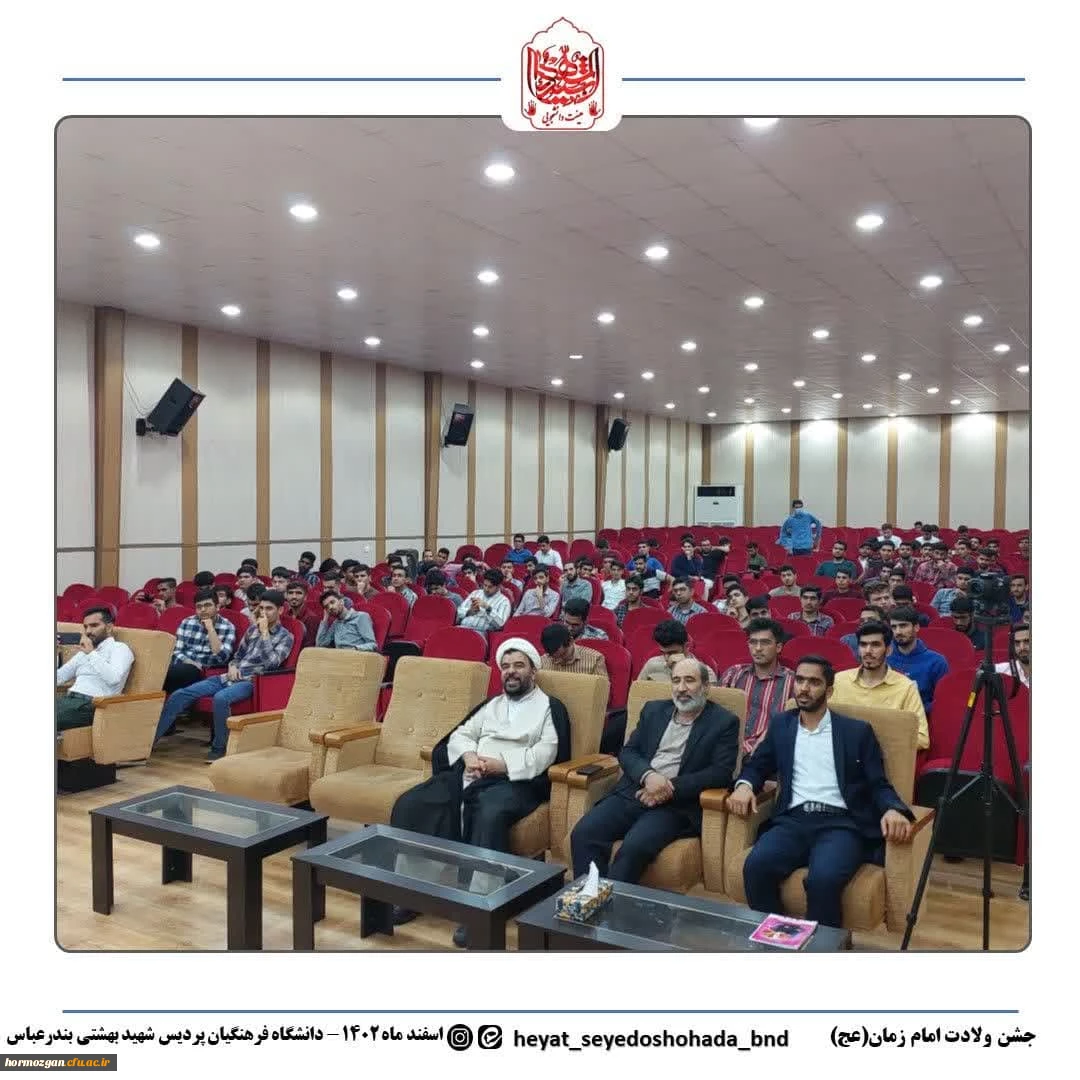 برپایی جشن میلاد امام زمان (عج) در دانشگاه فرهنگیان پردیس شهیدبهشتی استان هرمزگان با همکاری کانون مهدویت و بسیج دانشجویی دانشگاه فرهنگیان هرمزگان 3