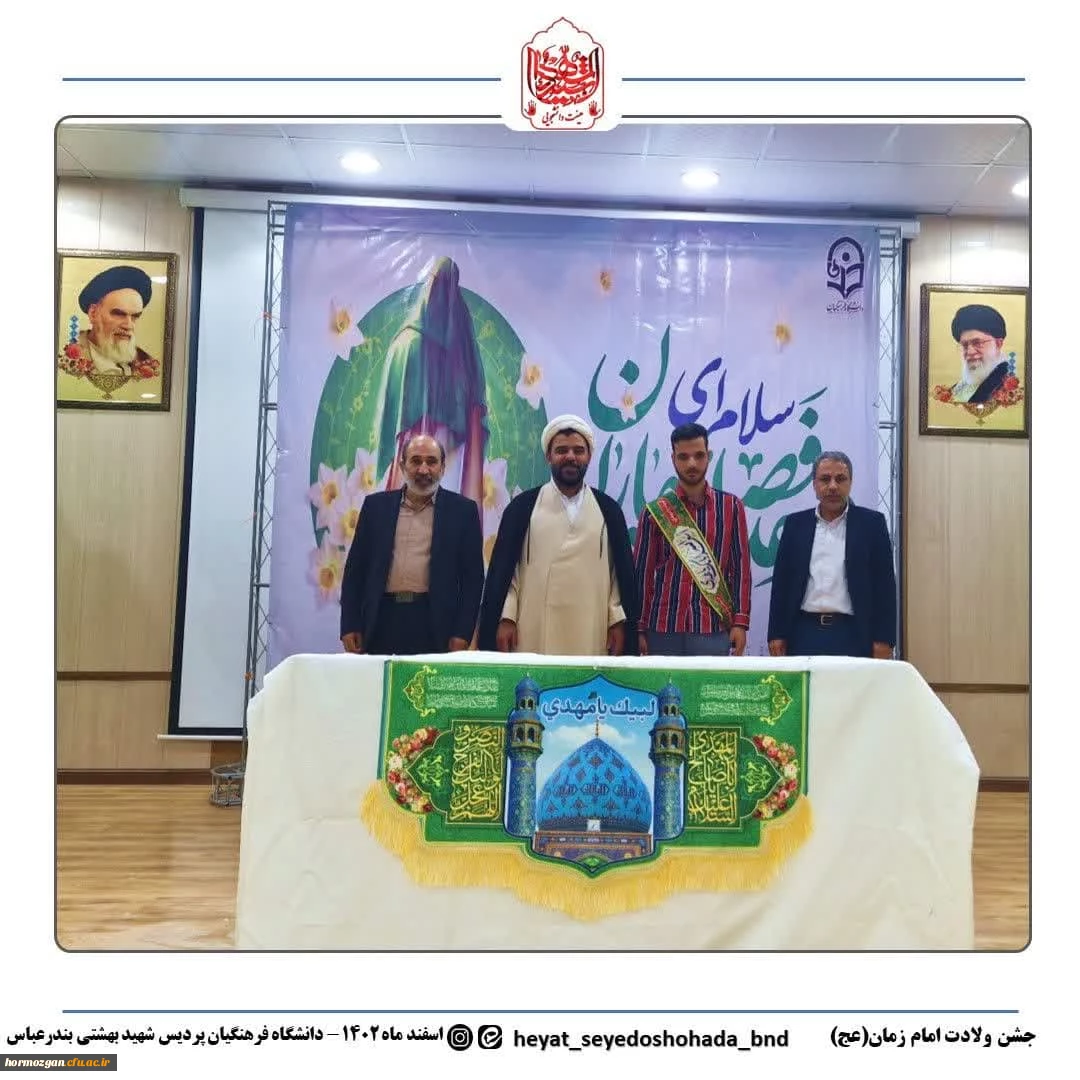 برپایی جشن میلاد امام زمان (عج) در دانشگاه فرهنگیان پردیس شهیدبهشتی استان هرمزگان با همکاری کانون مهدویت و بسیج دانشجویی دانشگاه فرهنگیان هرمزگان 4