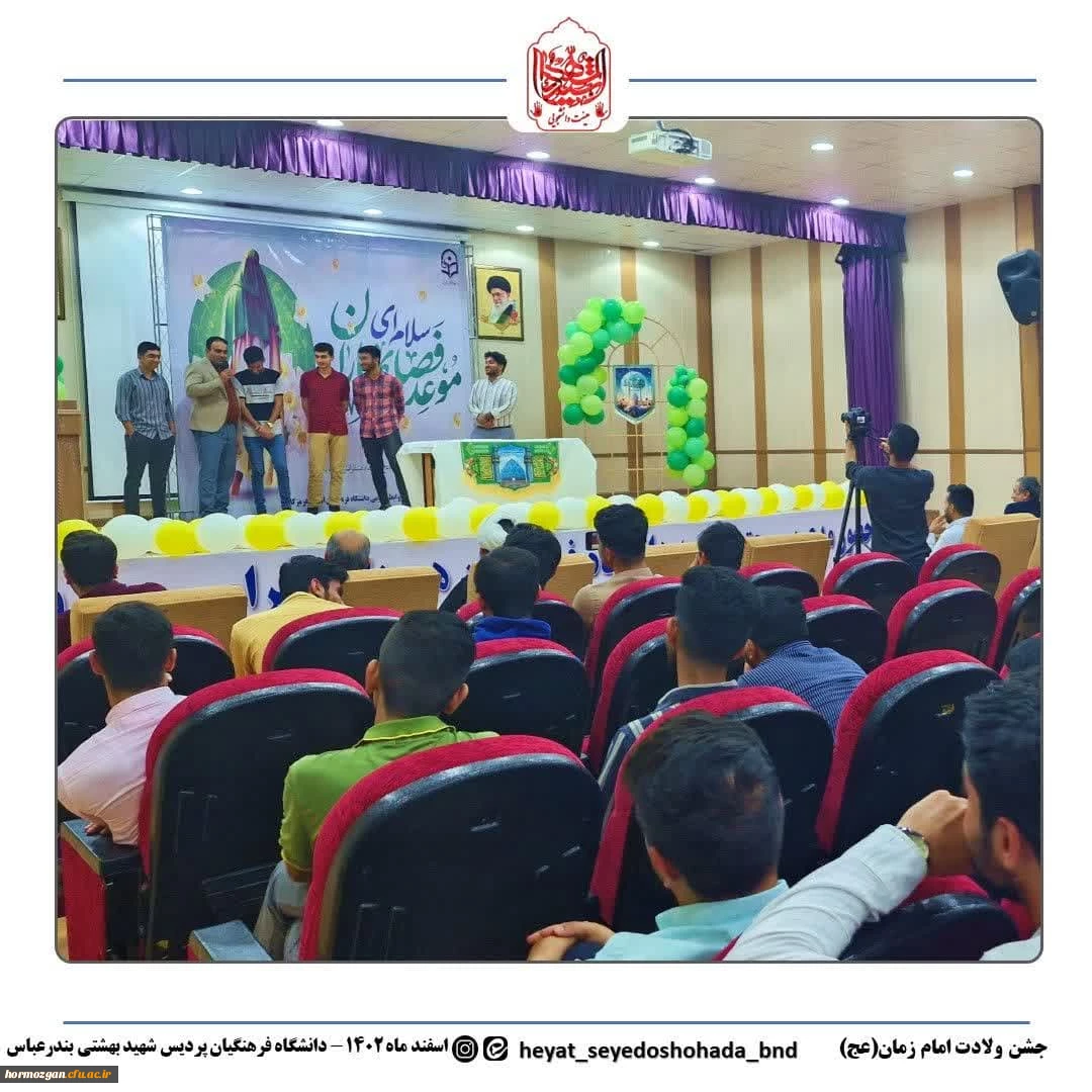 برپایی جشن میلاد امام زمان (عج) در دانشگاه فرهنگیان پردیس شهیدبهشتی استان هرمزگان با همکاری کانون مهدویت و بسیج دانشجویی دانشگاه فرهنگیان هرمزگان 6