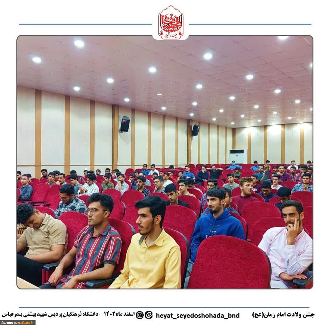 برپایی جشن میلاد امام زمان (عج) در دانشگاه فرهنگیان پردیس شهیدبهشتی استان هرمزگان با همکاری کانون مهدویت و بسیج دانشجویی دانشگاه فرهنگیان هرمزگان 7
