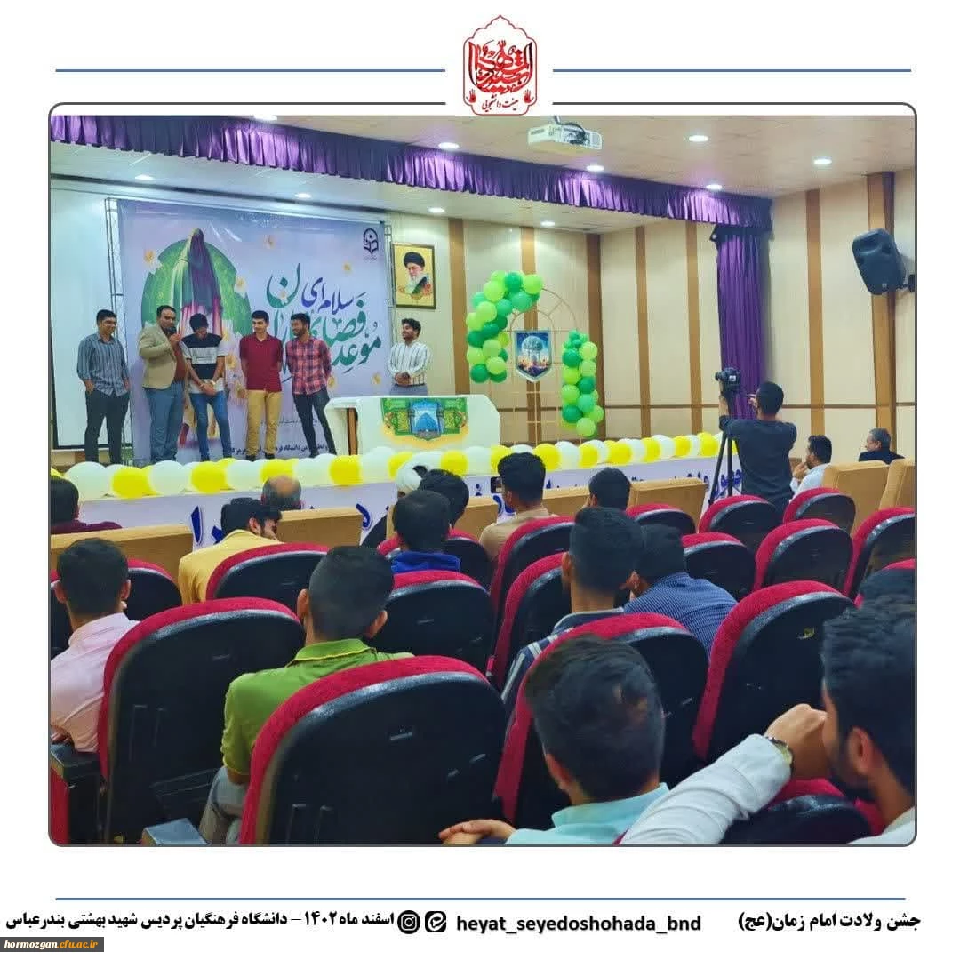 برپایی جشن میلاد امام زمان (عج) در دانشگاه فرهنگیان پردیس شهیدبهشتی استان هرمزگان با همکاری کانون مهدویت و بسیج دانشجویی دانشگاه فرهنگیان هرمزگان 8