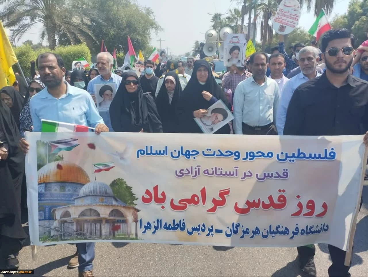 حضور دانشگاهیان دانشگاه فرهنگیان هرمزگان در آخرین جمعه ماه مبارک رمضان همزمان با سراسر کشور ، با حضور گسترده در راهپیمایی روز جهانی قدس 6