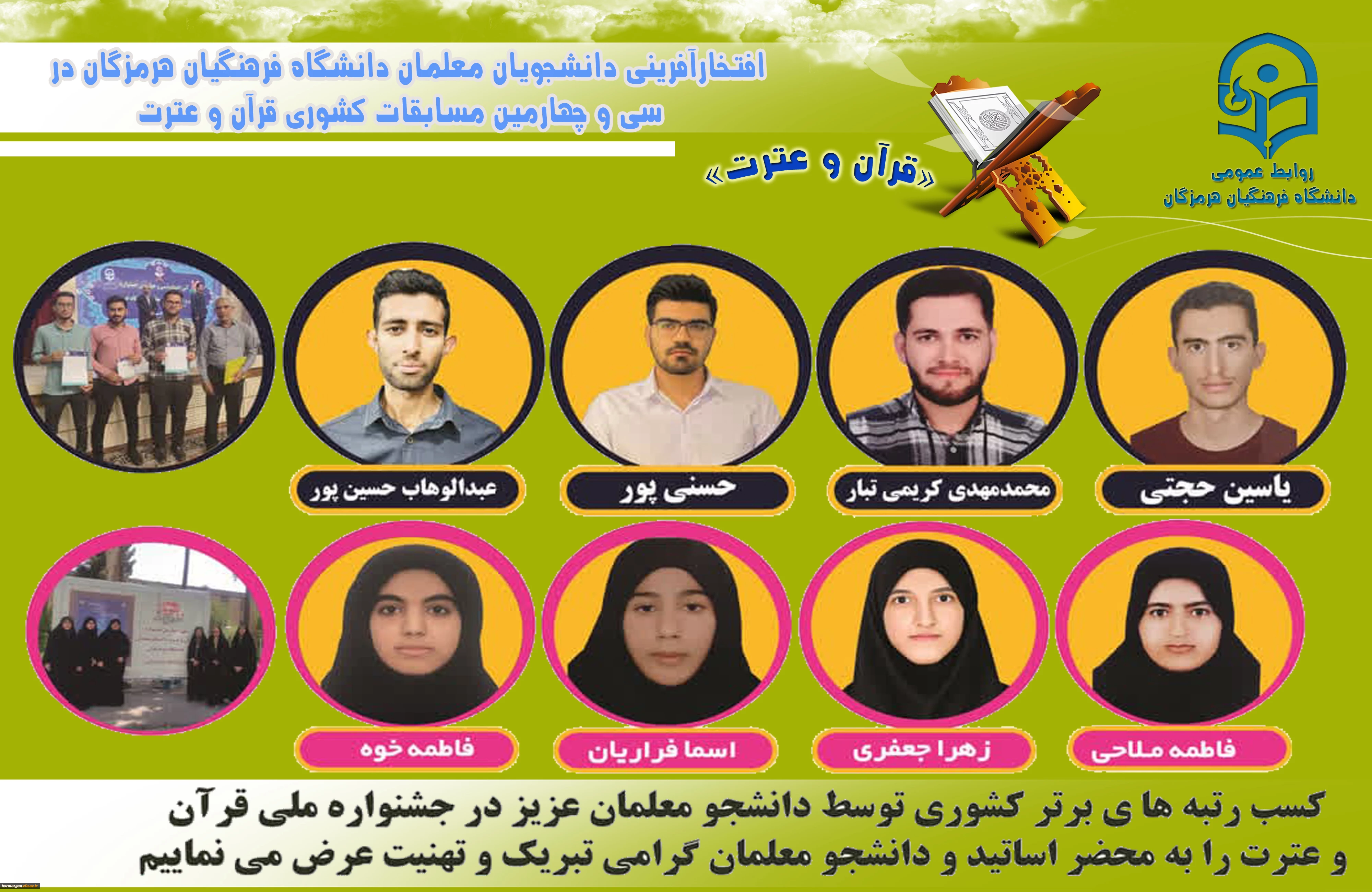 افتخارآفرینی دانشجویان معلمان دانشگاه فرهنگیان هرمزگان در سی و چهارمین مسابقات کشوری قرآن و عترت 2