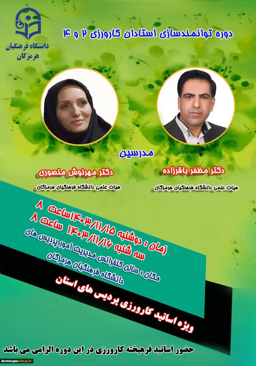 امتیاز دهید : دوره توانمندسازی استادان کارورزی 4 دردانشگاه فرهنگیان هرمزگان 3 سهشنبه 16 بهمن 1403 ساعت 10:36