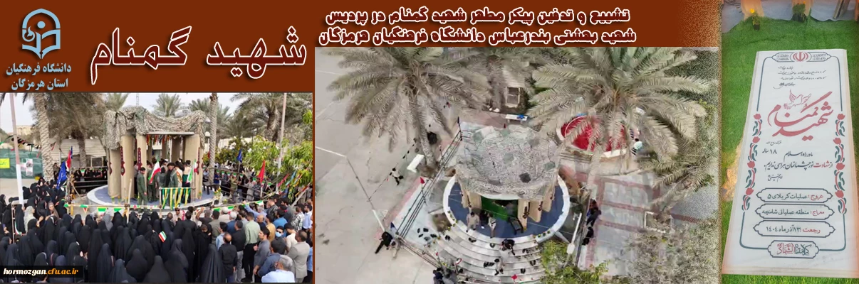 تشییع و تدفین پیکر مطهر شهید گمنام در پردیس شهید بهشتی بندرعباس دانشگاه فرهنگیان هرمزگان
