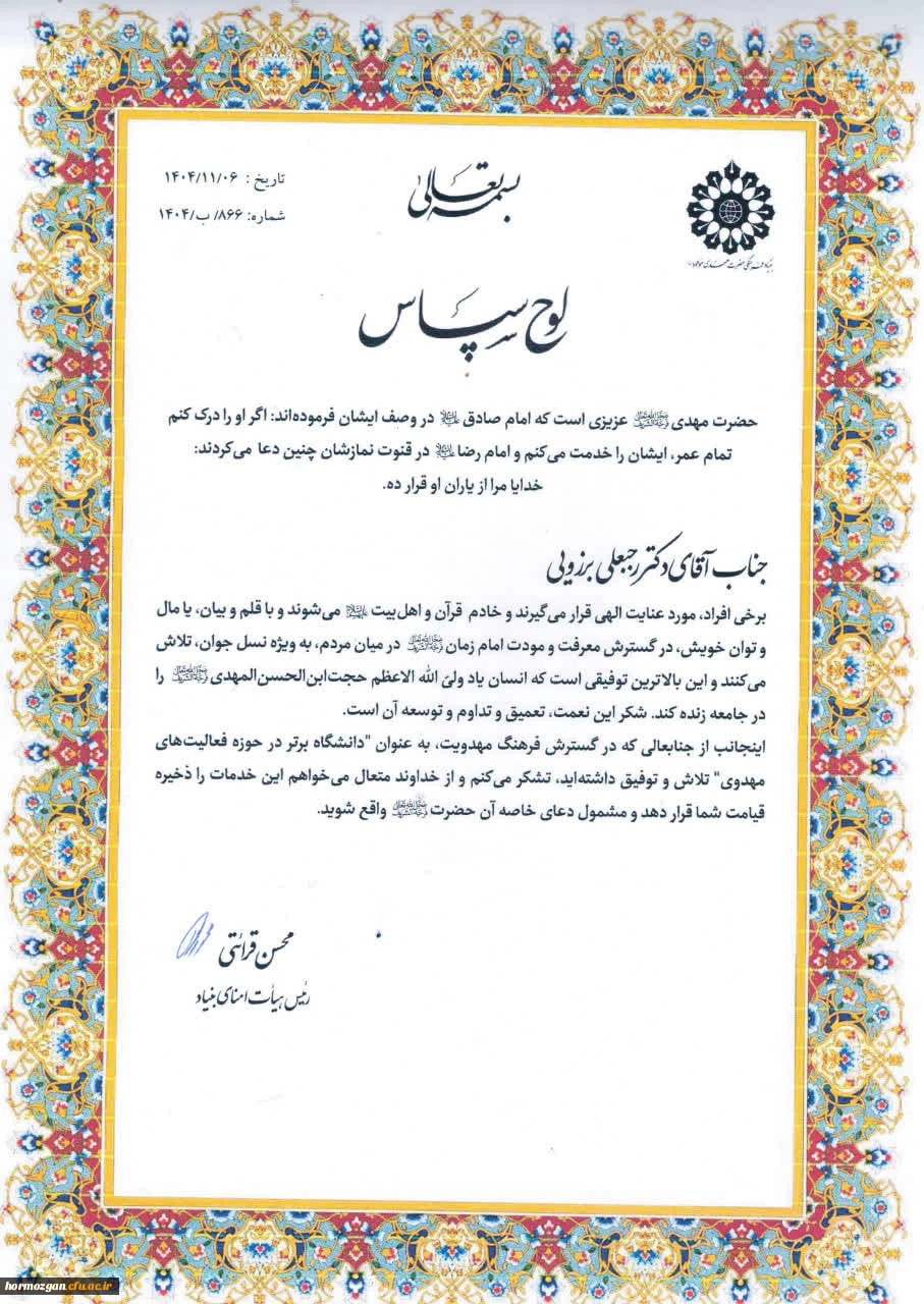 امتیاز دهید : پنجمین اجلاسیه ملی مهدویت و انقلاب اسلامی به میزبانی استان هرمزگان 12 شنبه 11 بهمن 1404 ساعت 8:49